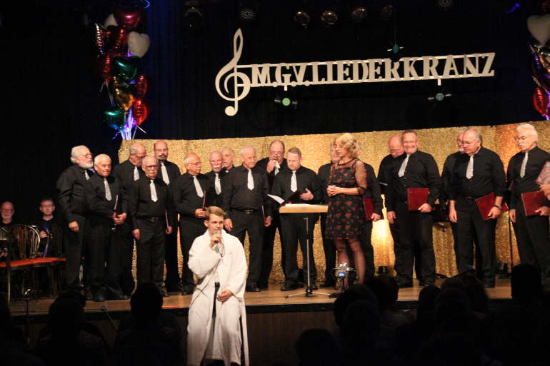 Moderator Simon Herrmann im “Udo Jürgens” Bademantel